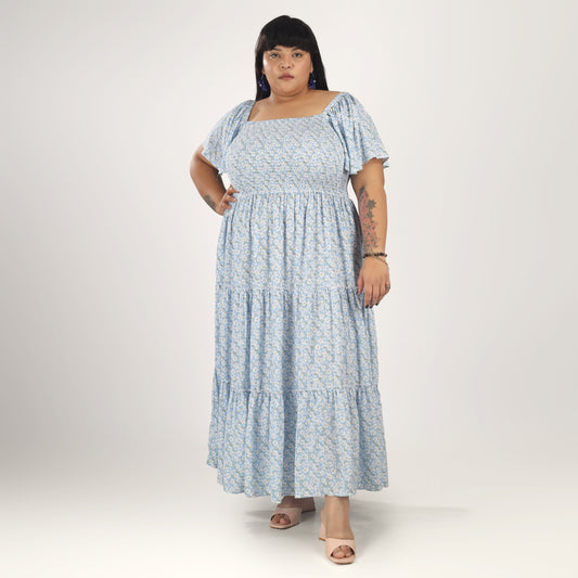 Floral Sky | Blue Tiered Smocking Dress With Pockets