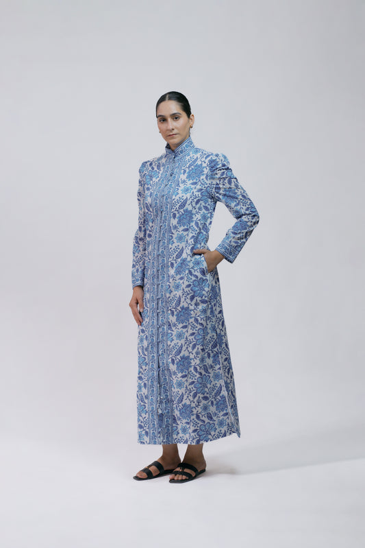 Floral Sky | Blue Tiered Smocking Dress With Pockets