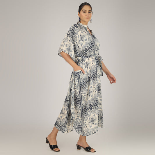White Paisley Shirt Dress With Pockets | One Size Fits AU 10 - 24