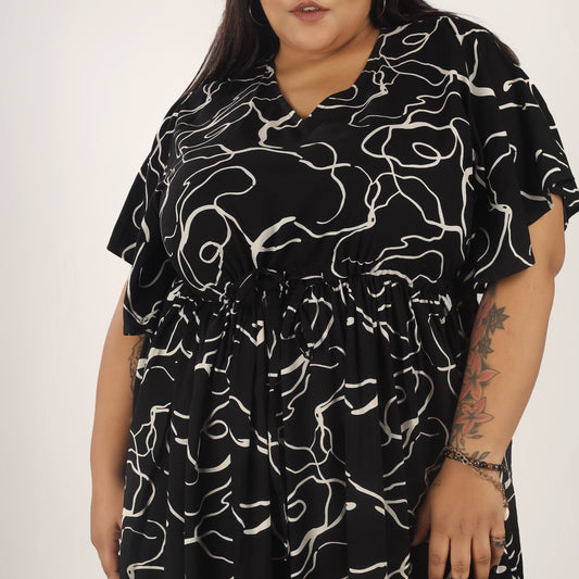 Midnight Mosaic | Black Frill Sleeve Dress With Pockets