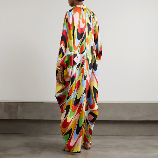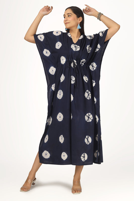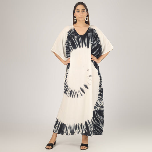 Midnight Swirl | 100% Rayon White Kaftan With Pockets