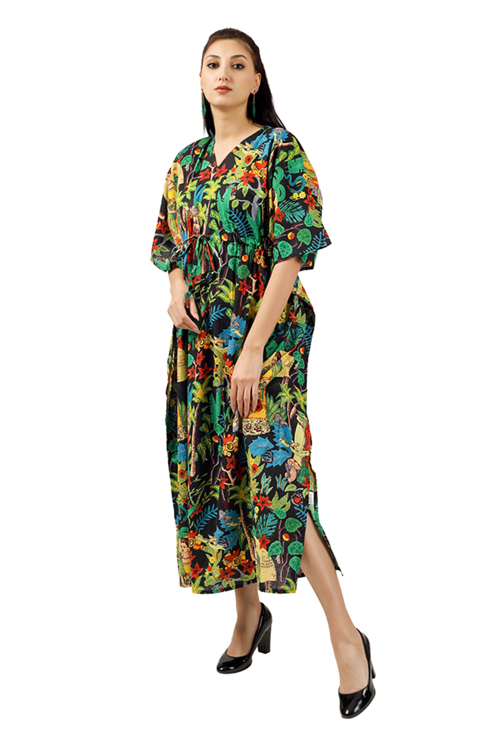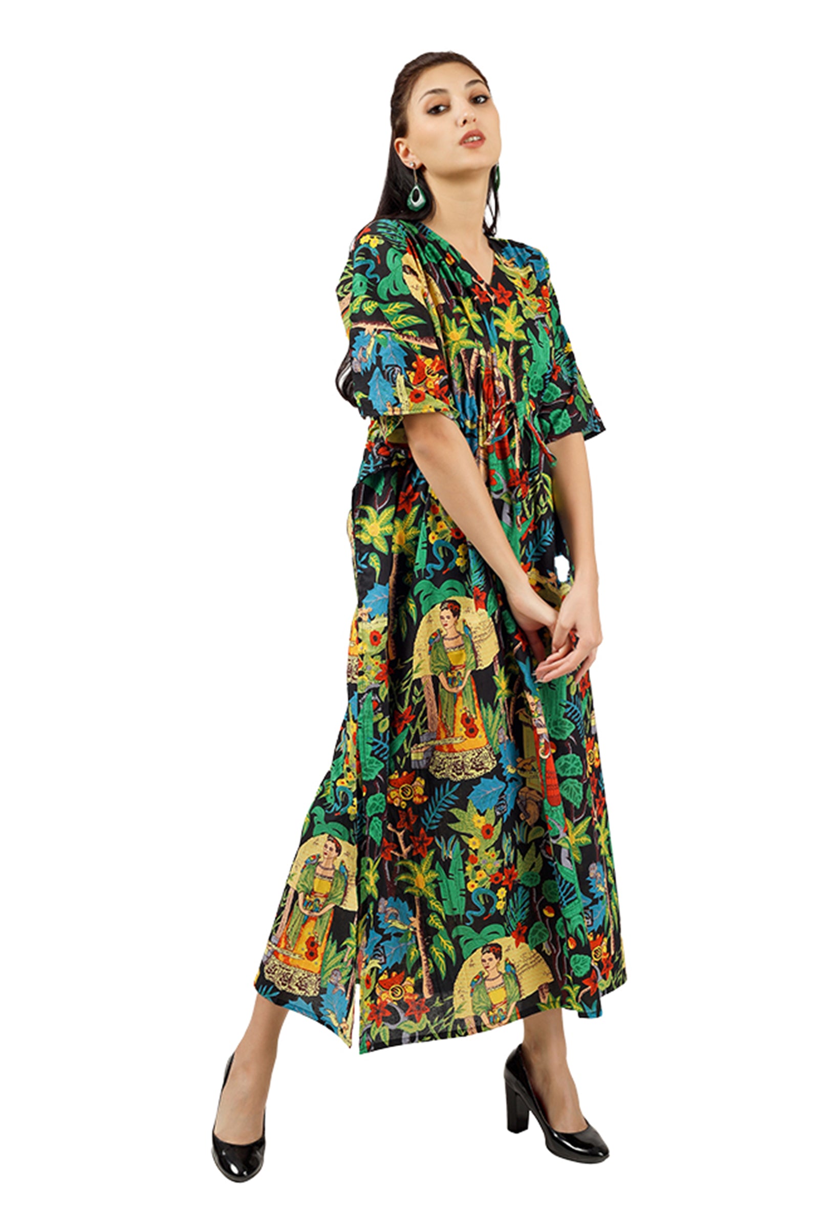Indulge in the cosy embrace of 100% soft cotton fabric. This kaftan offers a gentle touch against your skin, ensuring comfort and style go hand in hand for your everyday adventures.