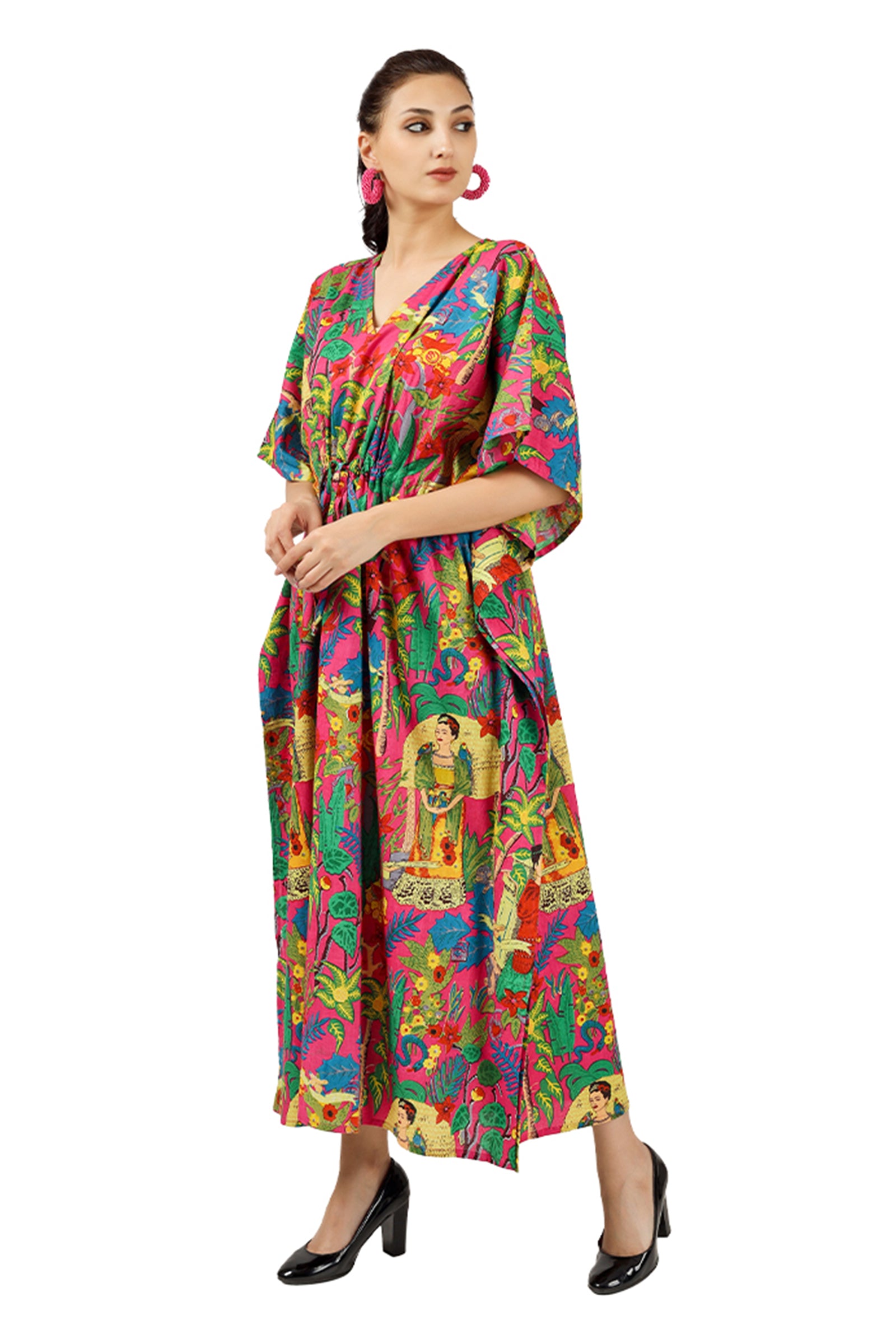 Indulge in the cosy embrace of 100% soft cotton fabric. This kaftan offers a gentle touch against your skin, ensuring comfort and style go hand in hand for your everyday adventures.
